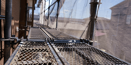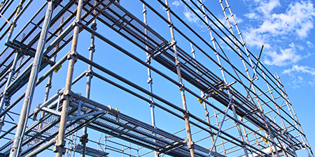 足場工事とは、建築現場など高所で作業をする際に、足元を支える足場の工事のこと。